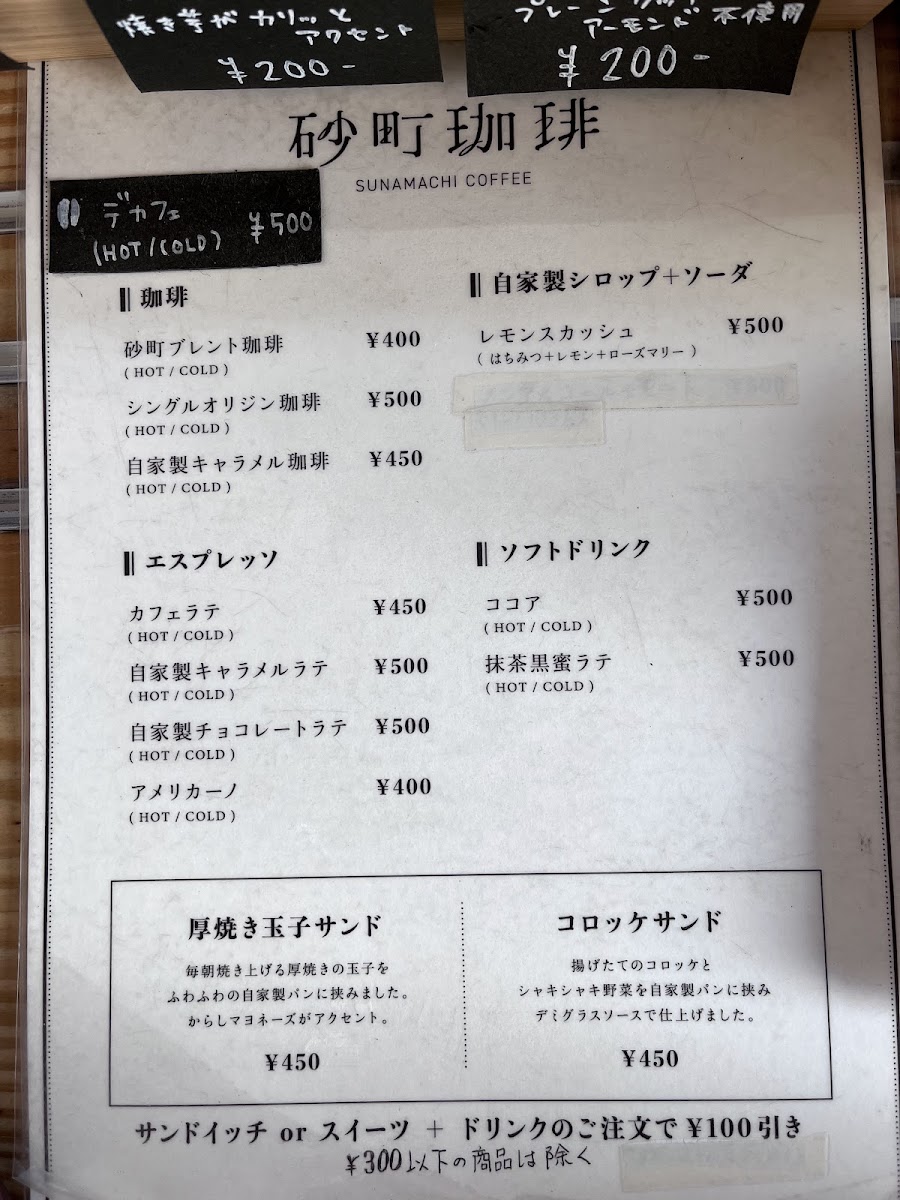 Sunamachi Coffee prides itself on serving exquisite brews and artisanal delights. The moment you step inside, the inviting aroma of freshly brewed coffee envelops you, setting the stage for a perfect escape from the hustle and bustle of city life. With an emphasis on quality, this café offers a range of carefully curated beverages, including their signature 砂町ブレンド珈琲 (Sunamachi Blend Coffee), available in a comforting hot cup for just ¥400. The coffee is meticulously sourced, resulting in a flavor that's both smooth and rich, making it a favorite among regulars.